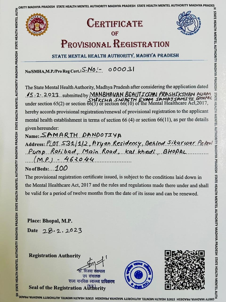 The domain name(s) is/are owned by Registered under M.P Societies Act (11110/29/07/2002). The domain name mentioned above are linked or redirected to a single website is for Nasha Mukti Punarvas Kendra, Bhopal run by Manbhavan Beautician Prashikshan Evam Shiksha Samiti (NGO). All content present on this website including all write up text, images, graphics, and videos is exclusive and proprietary material owned by Manbhavan Beautician Prashikshan Evam Shiksha Samiti (NGO) Registered Under M.P Societies Act (11110/29/07/2002). The and logo are trademarks which belong to Manbhavan Beautician Prashikshan Evam Shiksha Samiti (NGO); these trademarks may not be used in any manner whatsoever without prior written permission from Manbhavan Beautician Prashikshan Evam Shiksha Samiti (NGO).